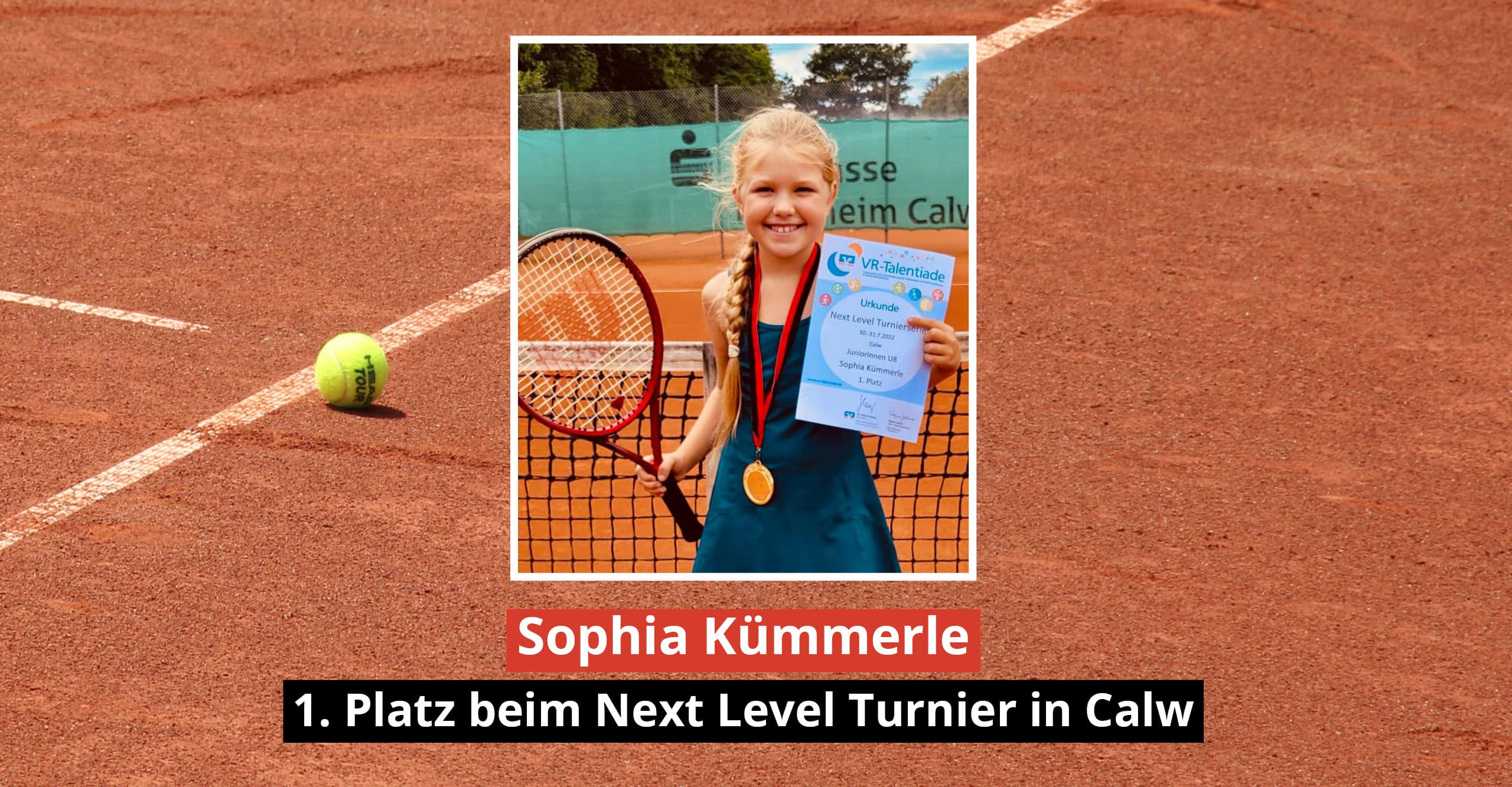 Nach den Siegen in Donzdorf und Ehingen gewann Sophia Kümmerle nun am Wochenende in Calw das dritte Next Level Turnier in Folge. Das U8-Turnier der VR-Talentiade fand vom 30.-31.07.22 statt und wir freuen uns sehr mit Sophia über diesen Sieg! Herzlichen Glückwunsch! Hier geht es zum Tableau auf wtb-tennis.de.