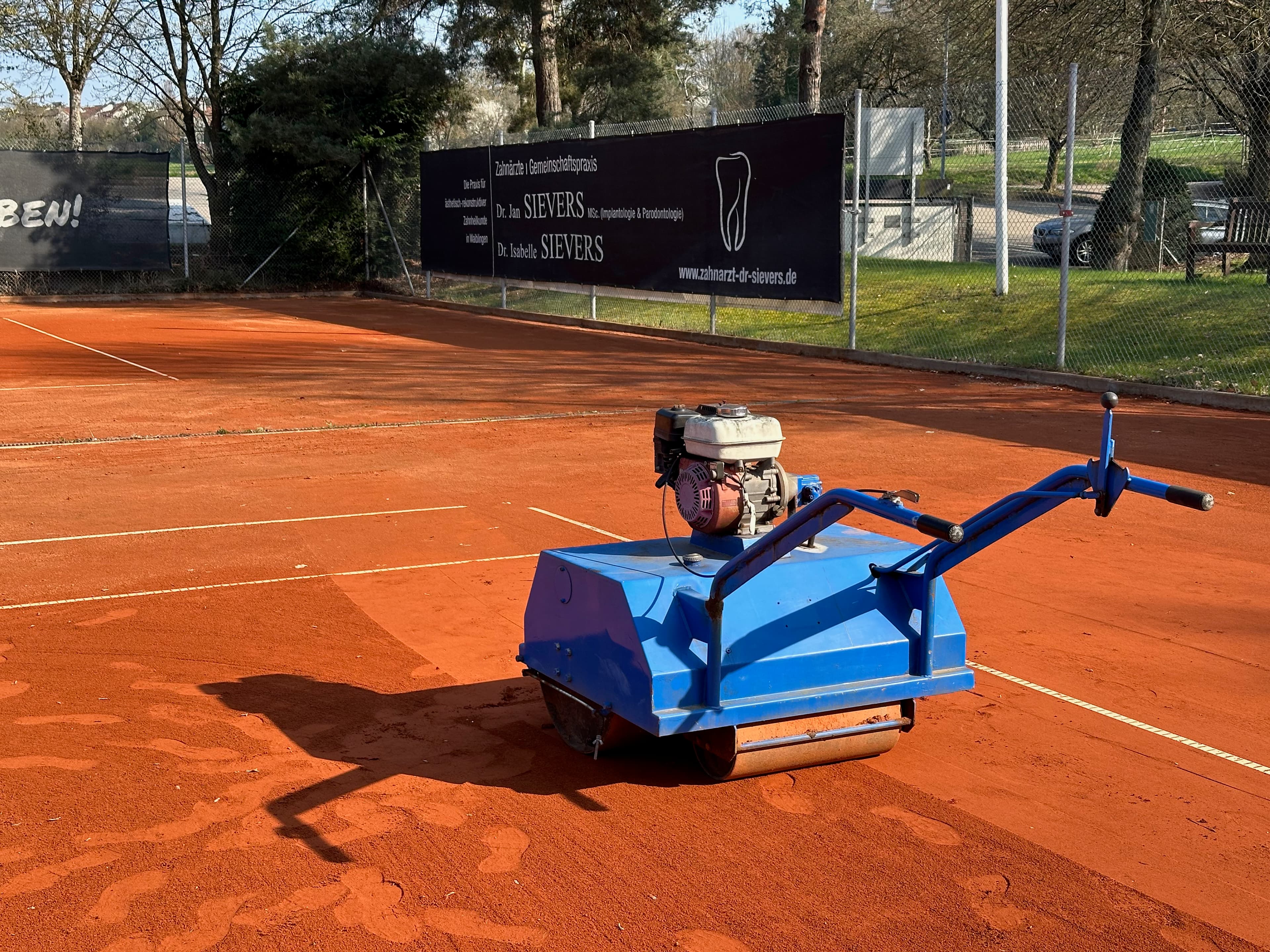 Neues von der Anlage: Jozef und Ivan verteilen seit kurzem neues Ziegelmehl auf unseren Plätzen, richten Linien, bereiten Netze vor und kümmern sich allgemein um die jährliche Platz-Instandsetzung. Die Eröffnung der Sommersaison 2026 steht kurz bevor.